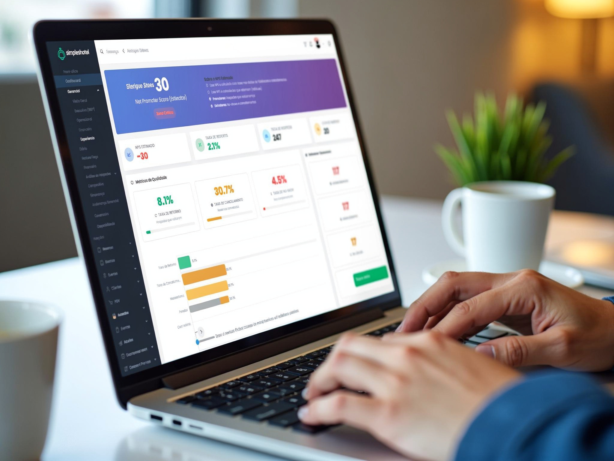 Sua melhor defesa contra avaliações negativas é saber da insatisfação antes que ela chegue nas OTAs. O Simpleshotel acaba de lançar seu módulo de NPS (Net Promoter Score) — uma ferramenta de pesquisa de satisfação integrada diretamente ao sistema de gestão hoteleira. Com ele, você envia automaticamente uma pesquisa personalizada ao hóspede logo após o check-out, coletando feedback em tempo real, antes que qualquer comentário seja publicado nas OTAs.